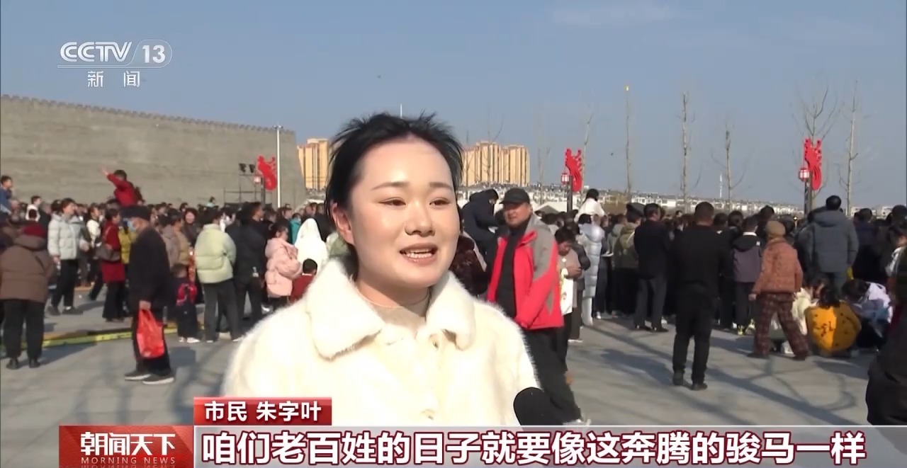 市民朱字叶:马年的喜庆全都融在这鼓点里了,咱们老百姓的日子就要像这奔腾的骏马一样,策马扬鞭,红红火火,越过越有奔头。